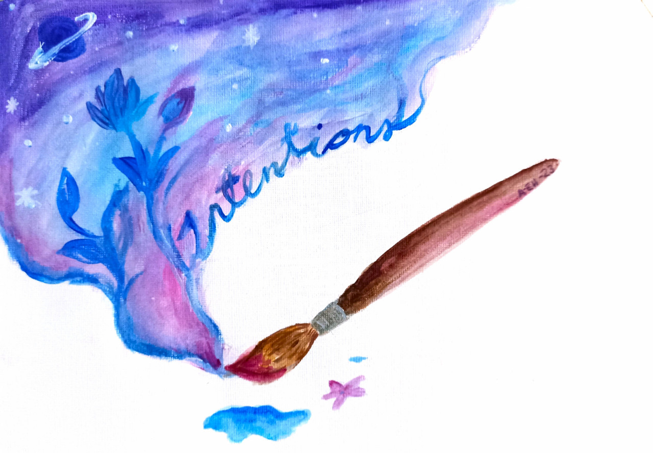 Once your intention feels aligned, you’ll translate it into a small intuitive painting or “intention card.”